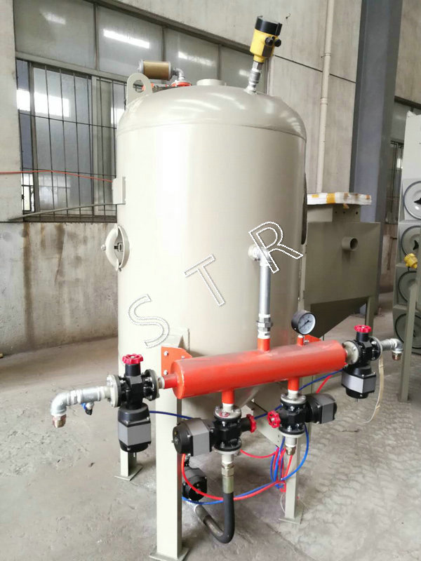 噴砂機采用雙缸體結構,因此,可達到連續作業的要求,噴砂工作可連續工作,不需一般