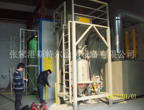 10、噴砂(丸)房室體采用聚苯乙烯發泡塑料夾心彩板房組成,具有消音功能,美觀、堅固、密閉。