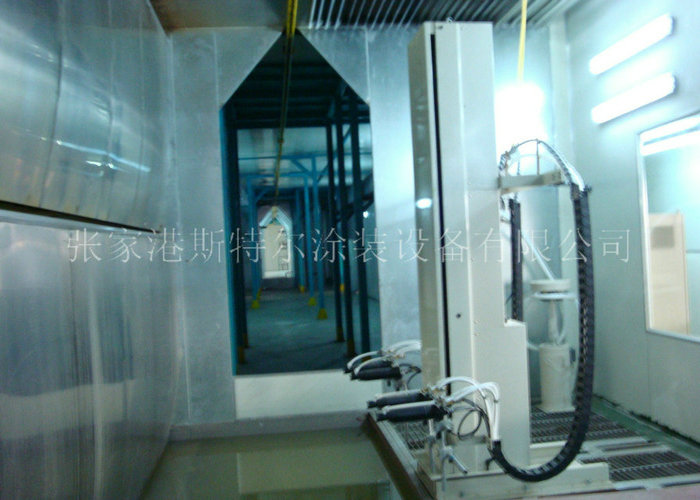 照明系統:在室體的頂側部和腰側部的安裝隔爆燈飾燈組。頂側燈組呈45o角連接,腰側燈組連接于壁板內。燈管應用隔爆型飛利普光照,既平安又節能環保且保障簡單,鎮流器應用本子公司結構設計的噴房用鎮流器,最終得以確認光強達700Lux控制。