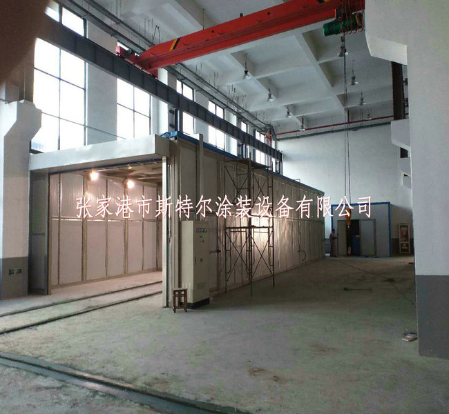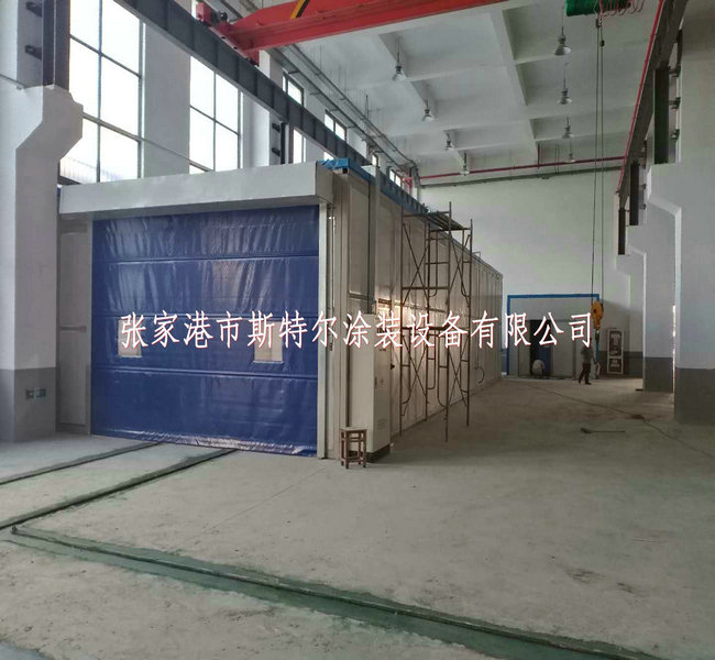 噴鋅房面(mian)積(ji)16X5.8X3.5m,的墻用到10#方管做骨架,內置75mm巖棉(mian)夾心板。正門為(wei)電動四輪升高(gao)式,末(mo)端如何設置科粒物(wu)過(guo)濾水墻。