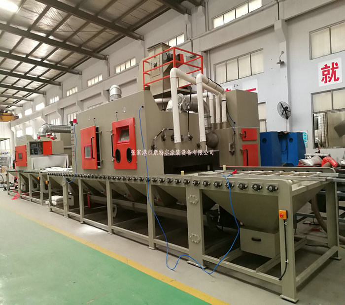 1、噴砂時,工人將工件放在自動噴砂機上料端輸送滾筒上; 2、啟動電源開關,上料端輸送滾筒帶動工件向工作艙內移動。噴砂機噴槍開始工作,進行同步噴砂機及同步移動達到在噴砂機工作中不停歇噴砂工作; 3.鑄件稱謂: 磨砂玻璃鋼型材鑄件;